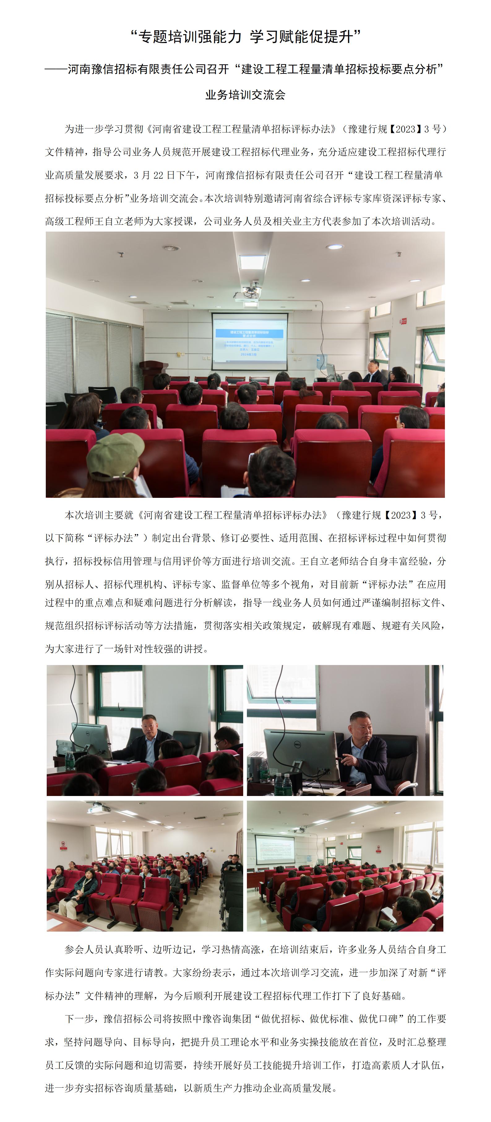 “專題培訓強能力 學習賦能促提升” ——河南豫信招標有限責任公司召開“建設工程工程量清單招標投標要點分析”業務培訓交流會