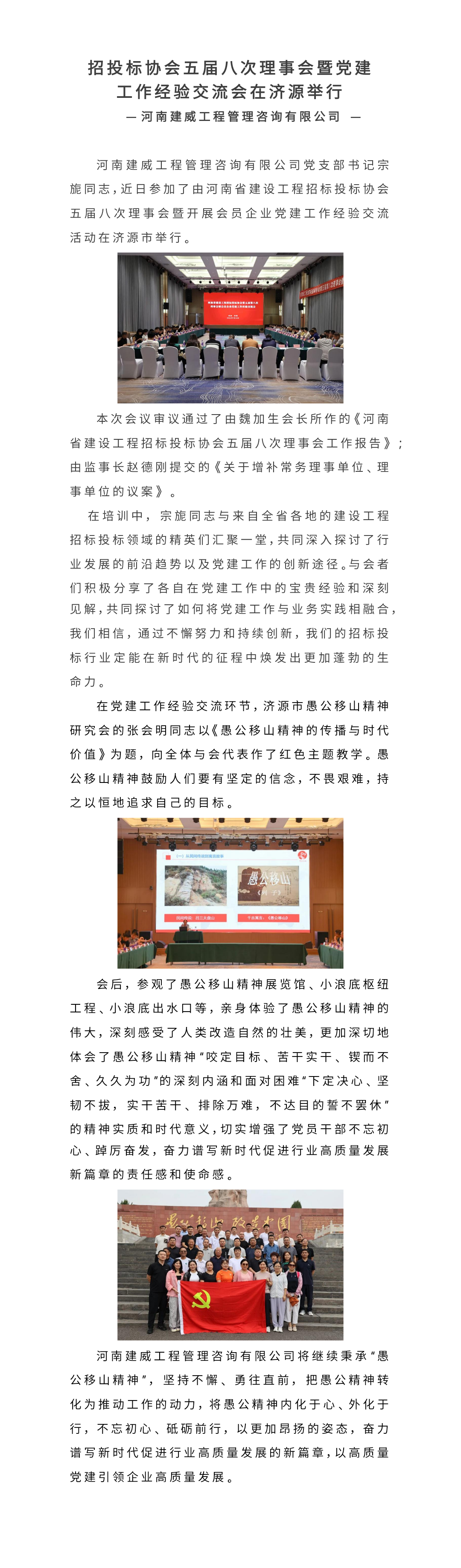 會員風采丨招投標協會五屆八次理事會暨黨建 工作經驗交流會在濟源舉行——河南建威工程管理咨詢有限公司