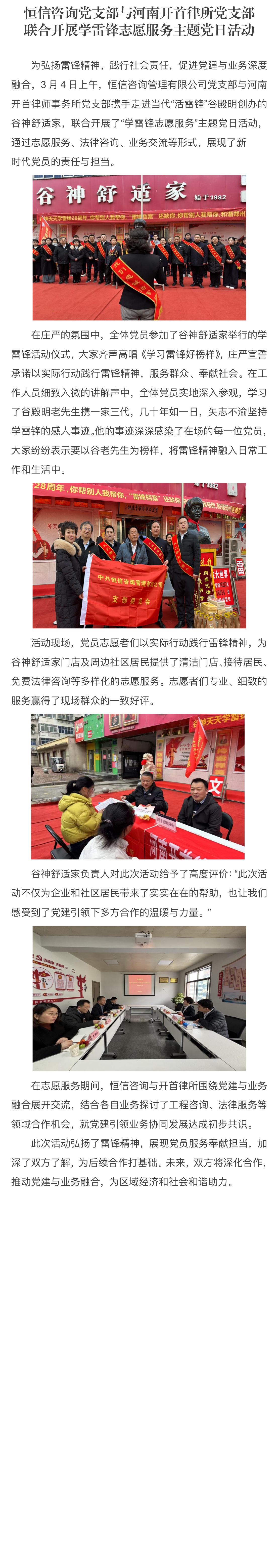 會員風采丨恒信咨詢黨支部與河南開首律所黨支部 聯合開展學雷鋒志愿服務主題黨日活動