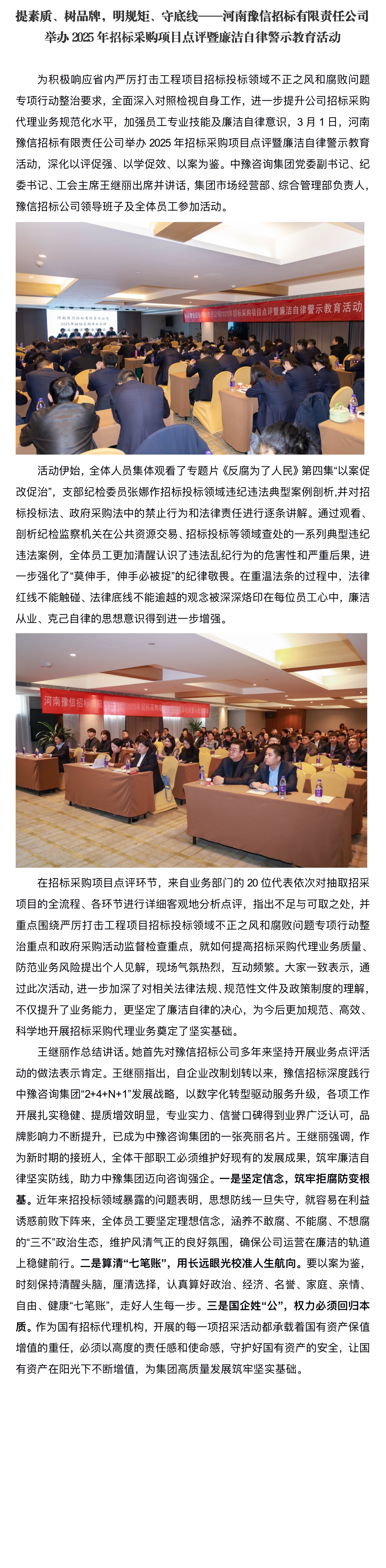 會員風采丨提素質、樹品牌,明規矩、守底線——河南豫信招標有限責任公司 舉辦2025年招標采購項目點評暨廉潔自律警示教育活動