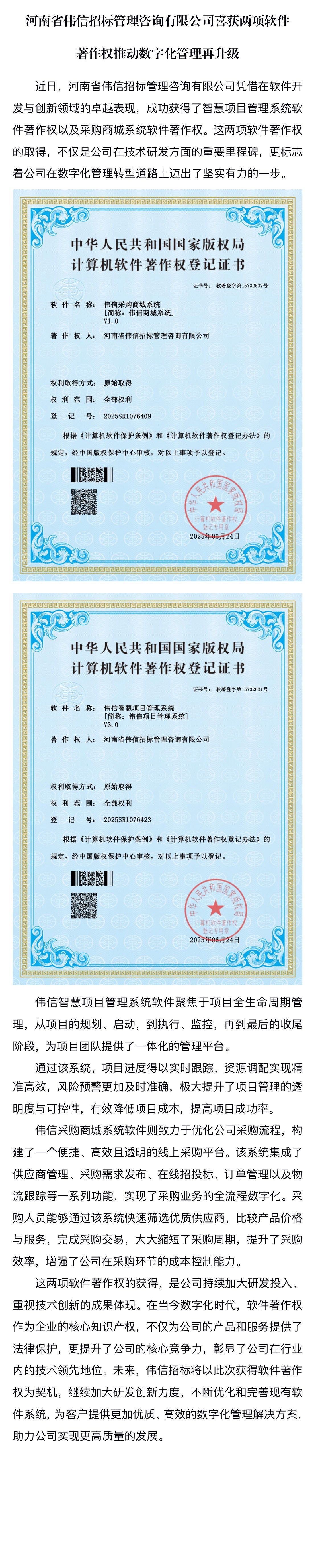 會(huì)員風(fēng)采丨河南省偉信招標(biāo)管理咨詢有限公司喜獲兩項(xiàng)軟件著作權(quán)推動(dòng)數(shù)字化管理再升級(jí)