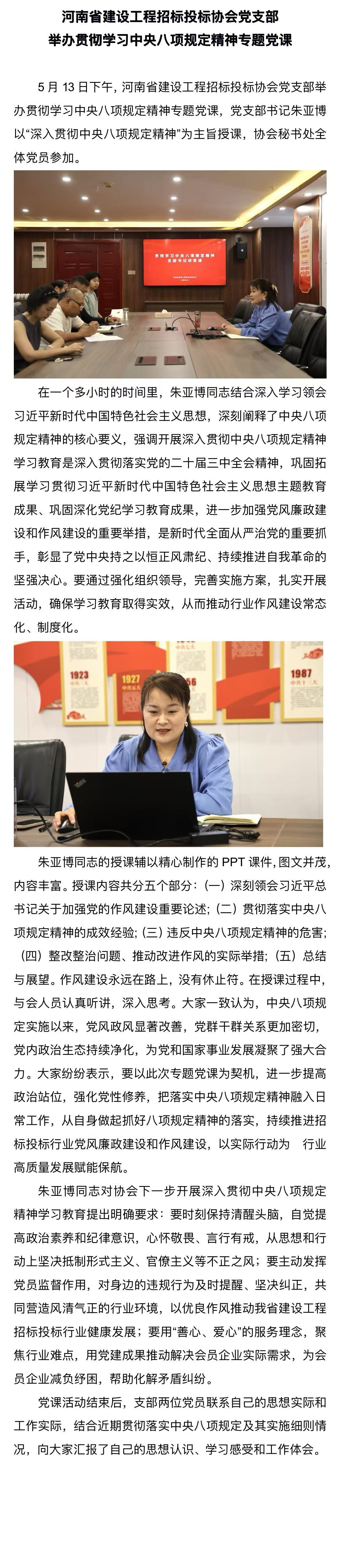黨建學習丨河南省建設工程招標投標協會黨支部舉辦貫徹學習中央八項規定精神專題黨課