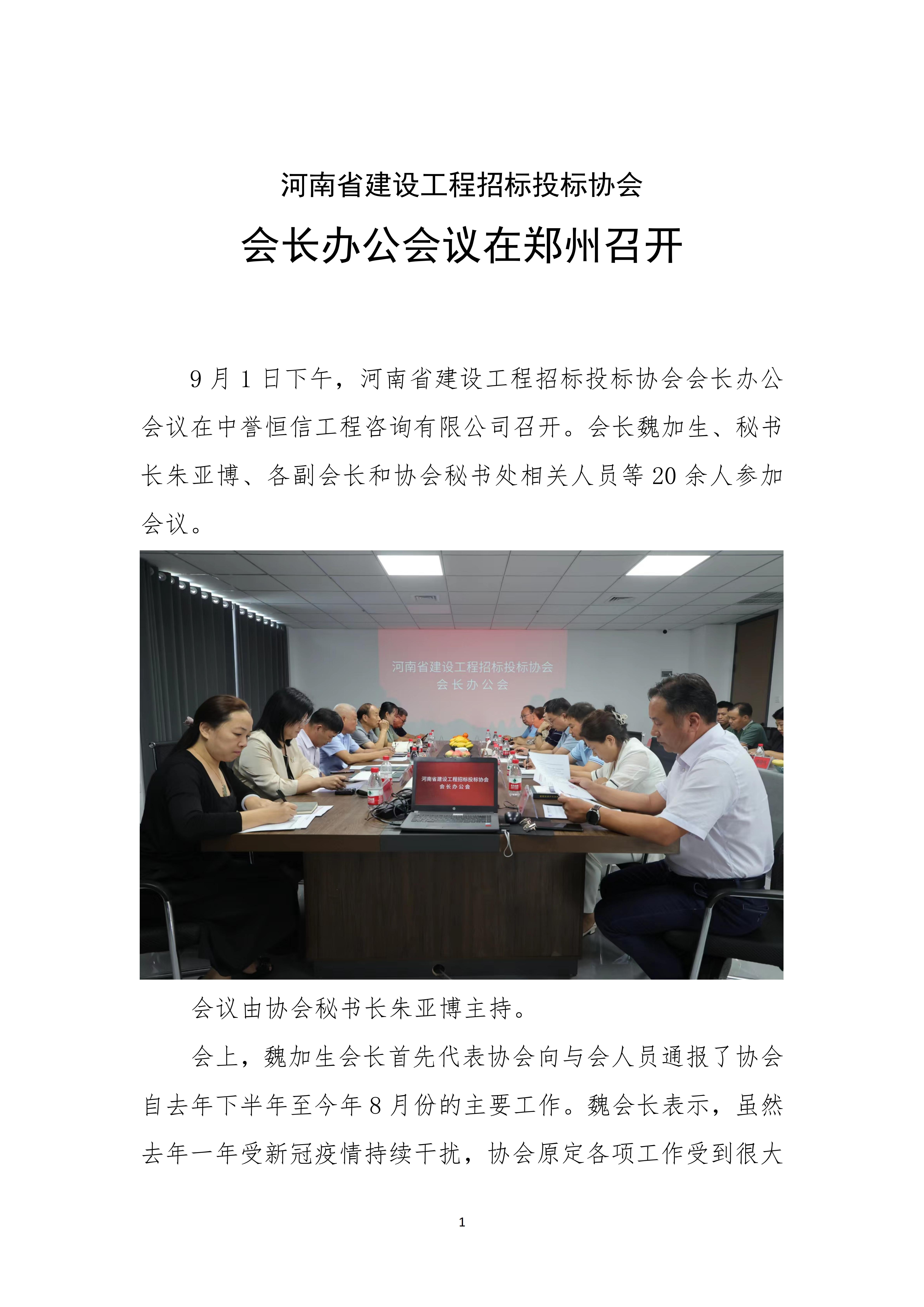 河南省建設(shè)工程招標(biāo)投標(biāo)協(xié)會 會長辦公會議在鄭州召開
