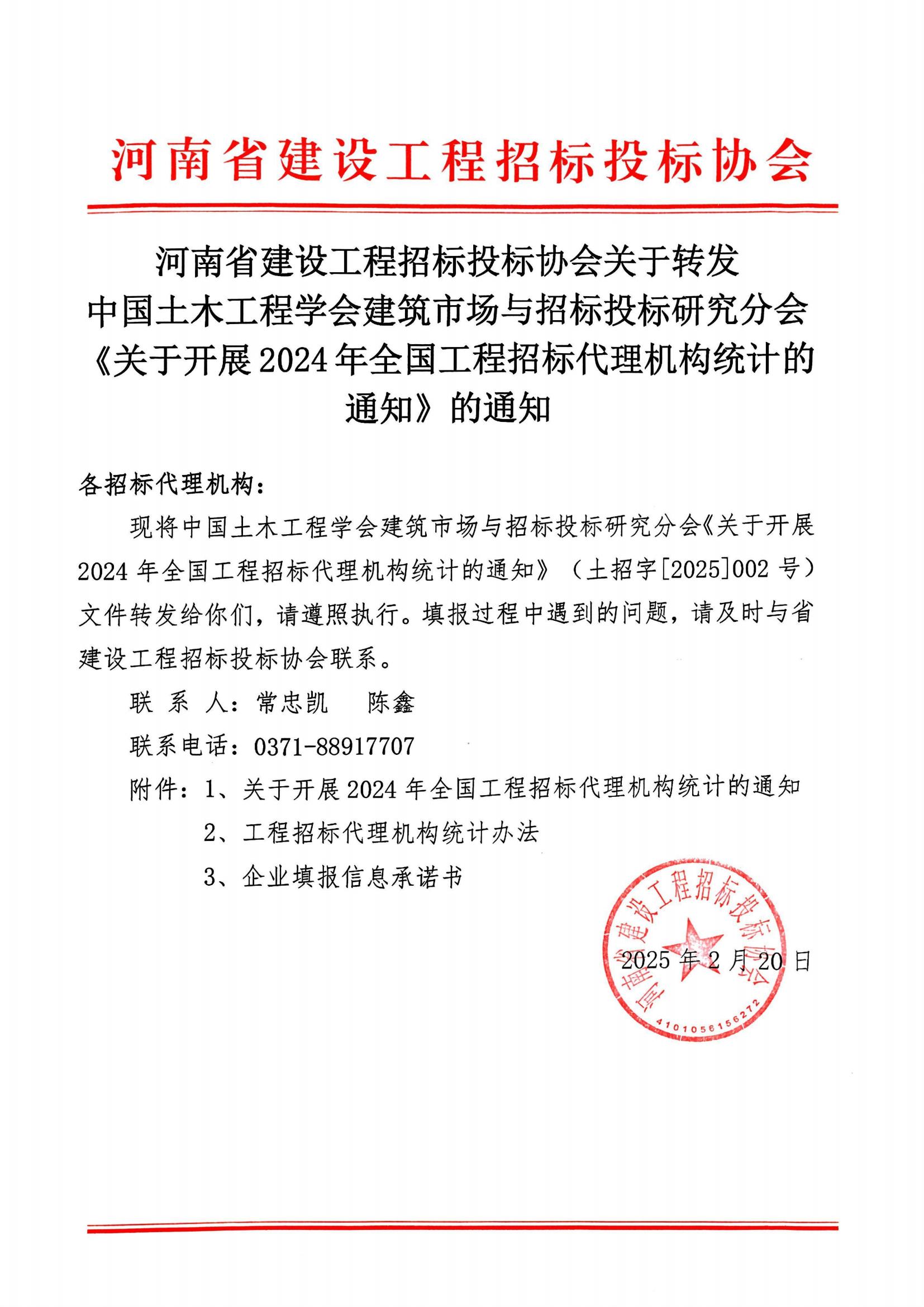關于轉發中國土木工程學會建筑市場與招標投標研究分會《關于開展2024年全國招標代理機構統計的通知》的通知